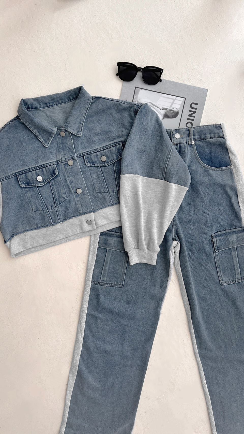 C87 現貨「拼接牛仔套裝」