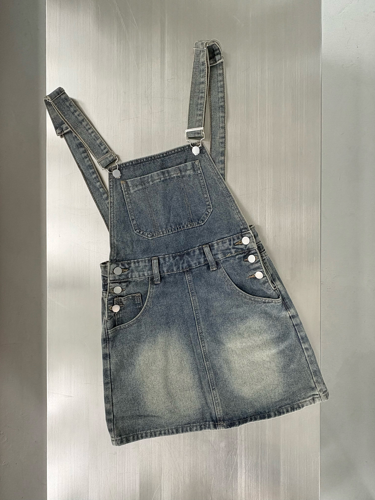 A102 現貨「復古刷牛仔吊帶裙」