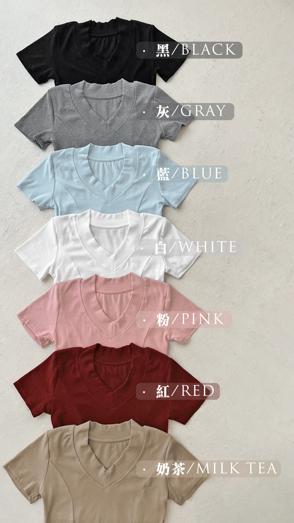 G2065 現貨「V領好身材坑紋上衣」