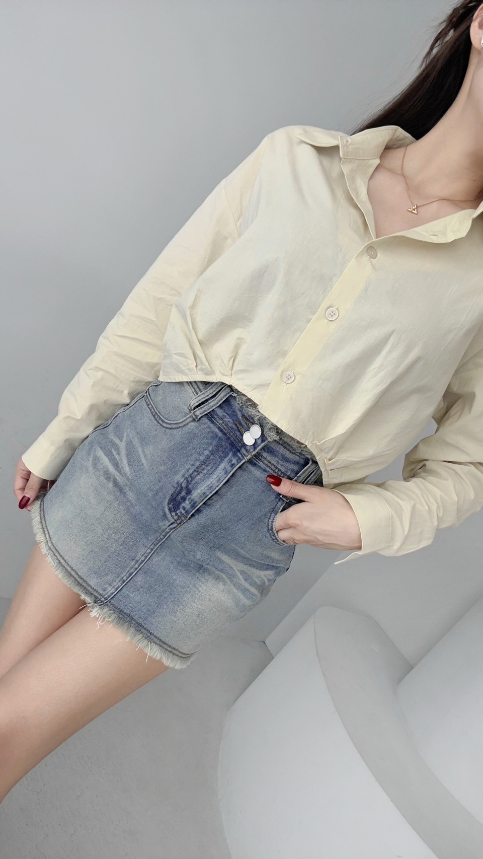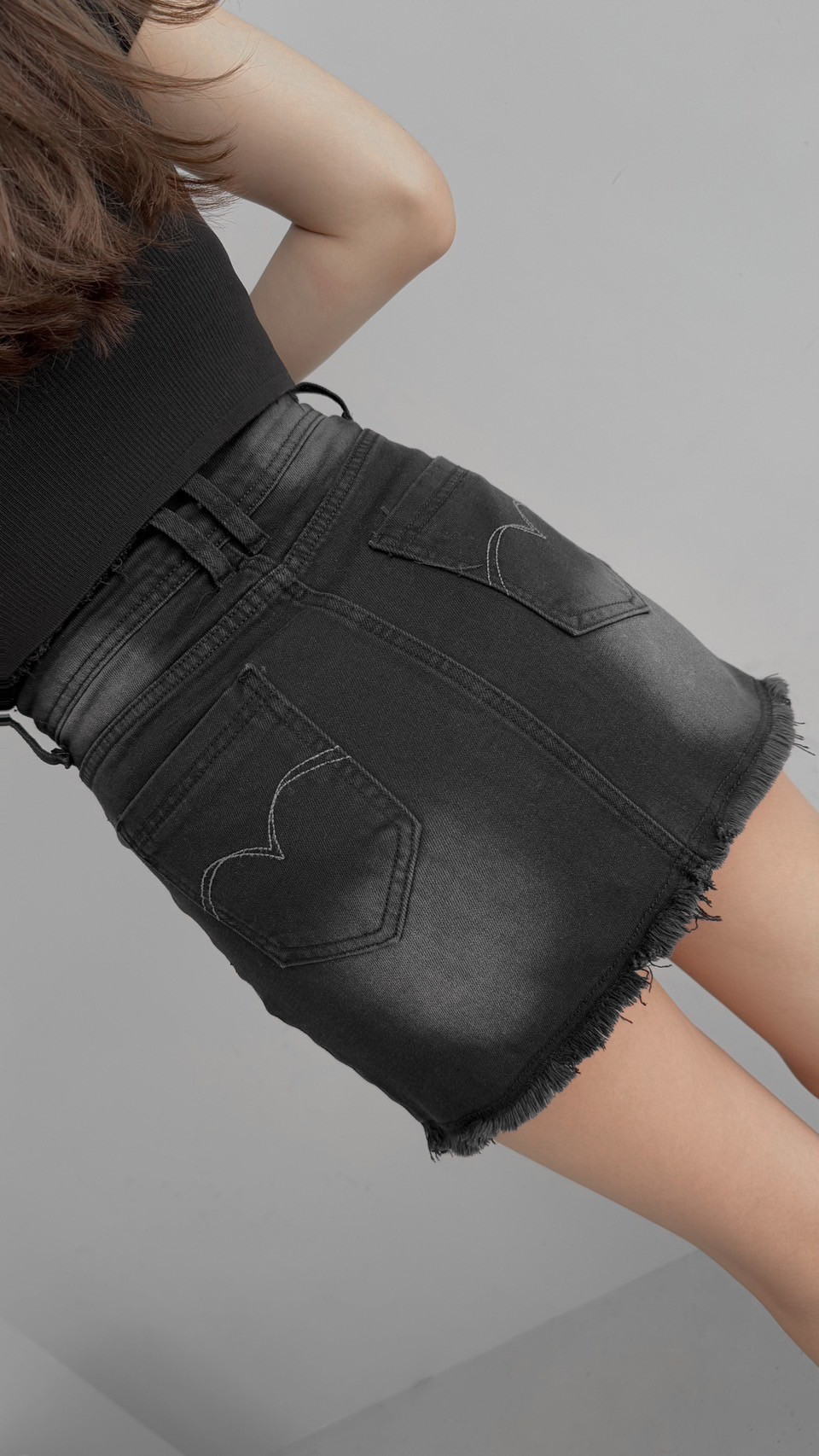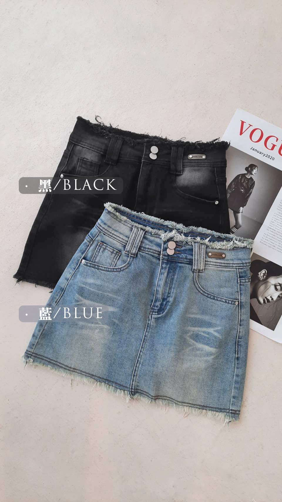 G4166 現貨「獨家!刷鬚彈力牛仔褲裙」