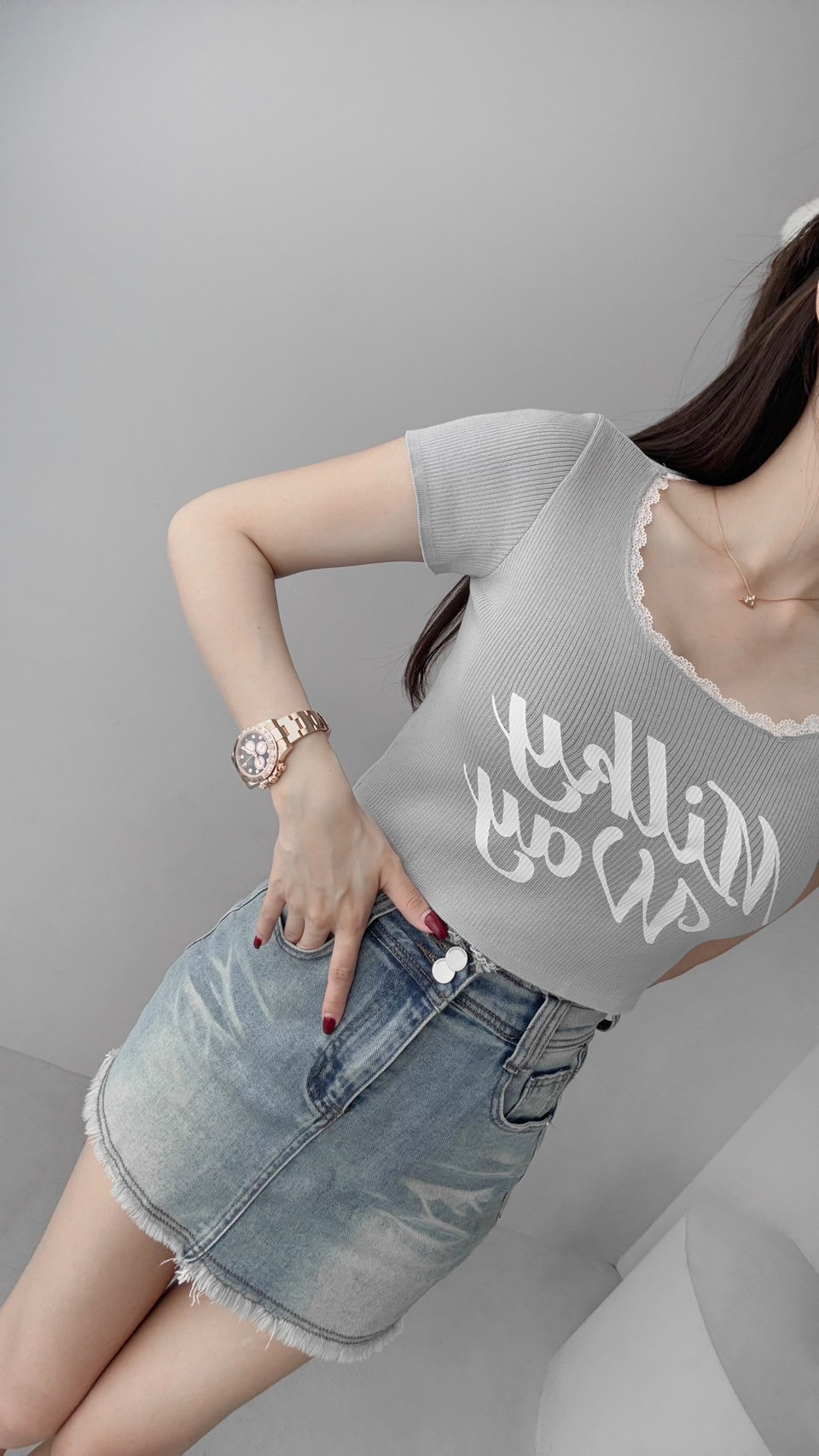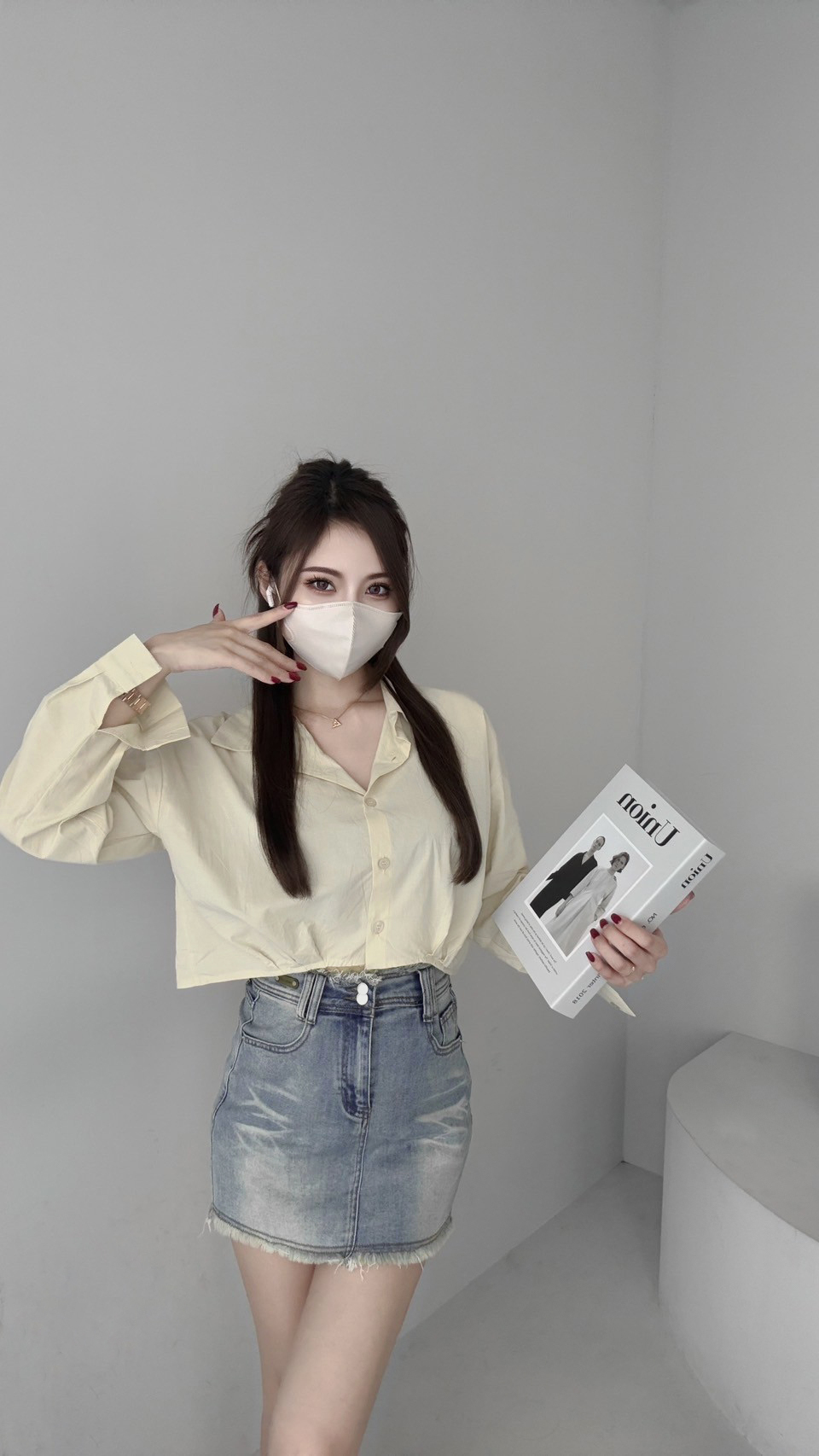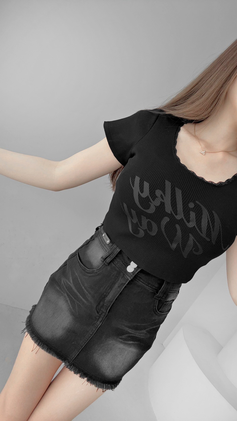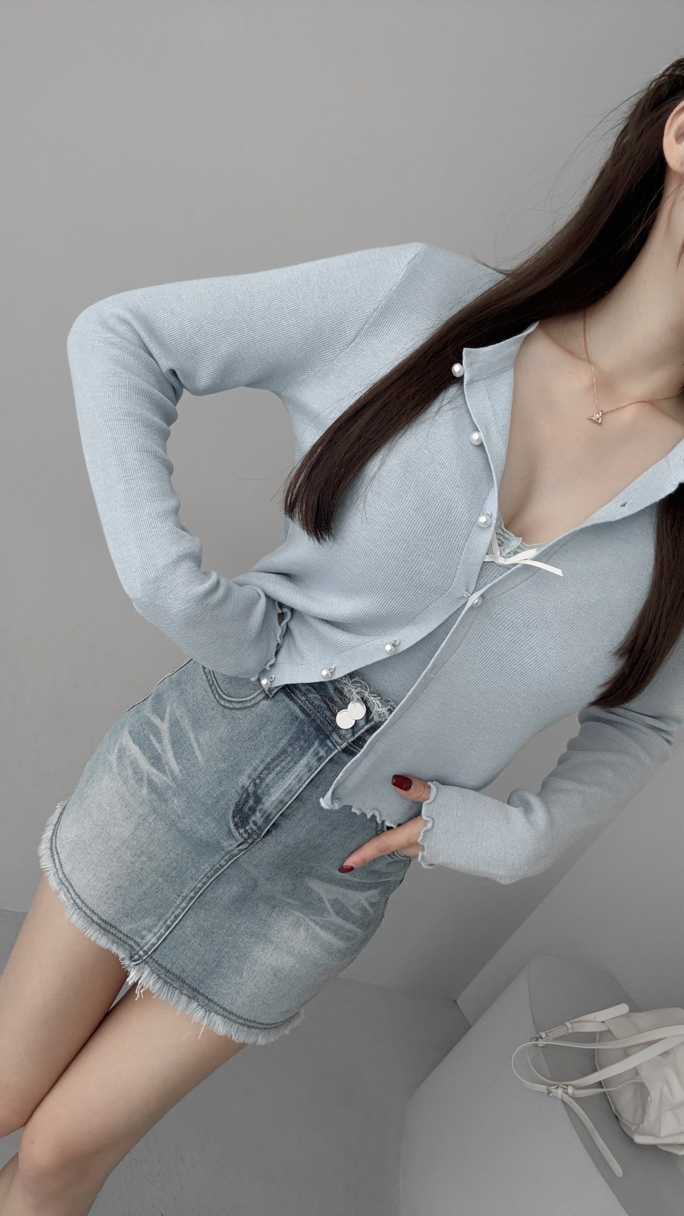 G4166 現貨「獨家!刷鬚彈力牛仔褲裙」