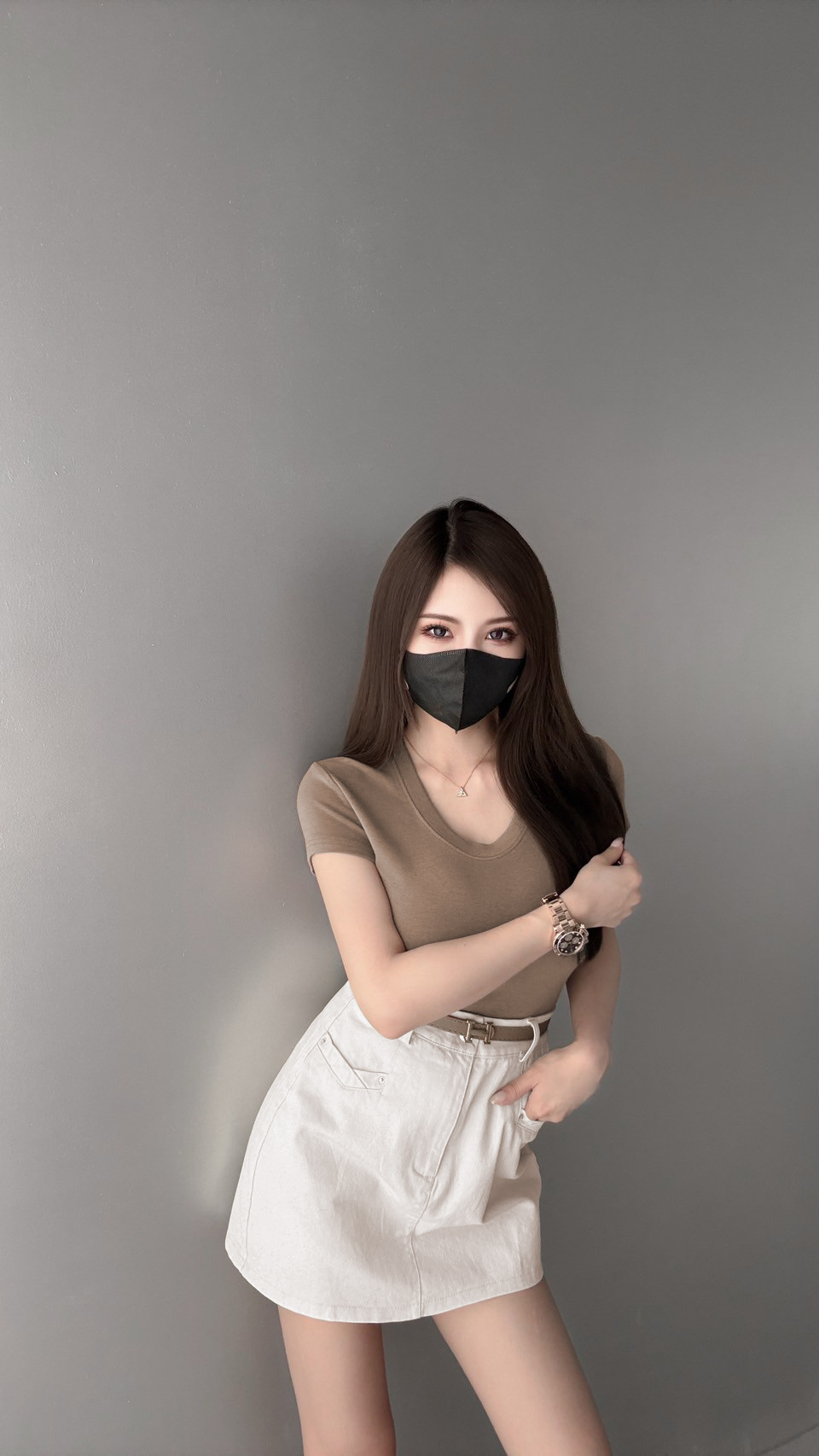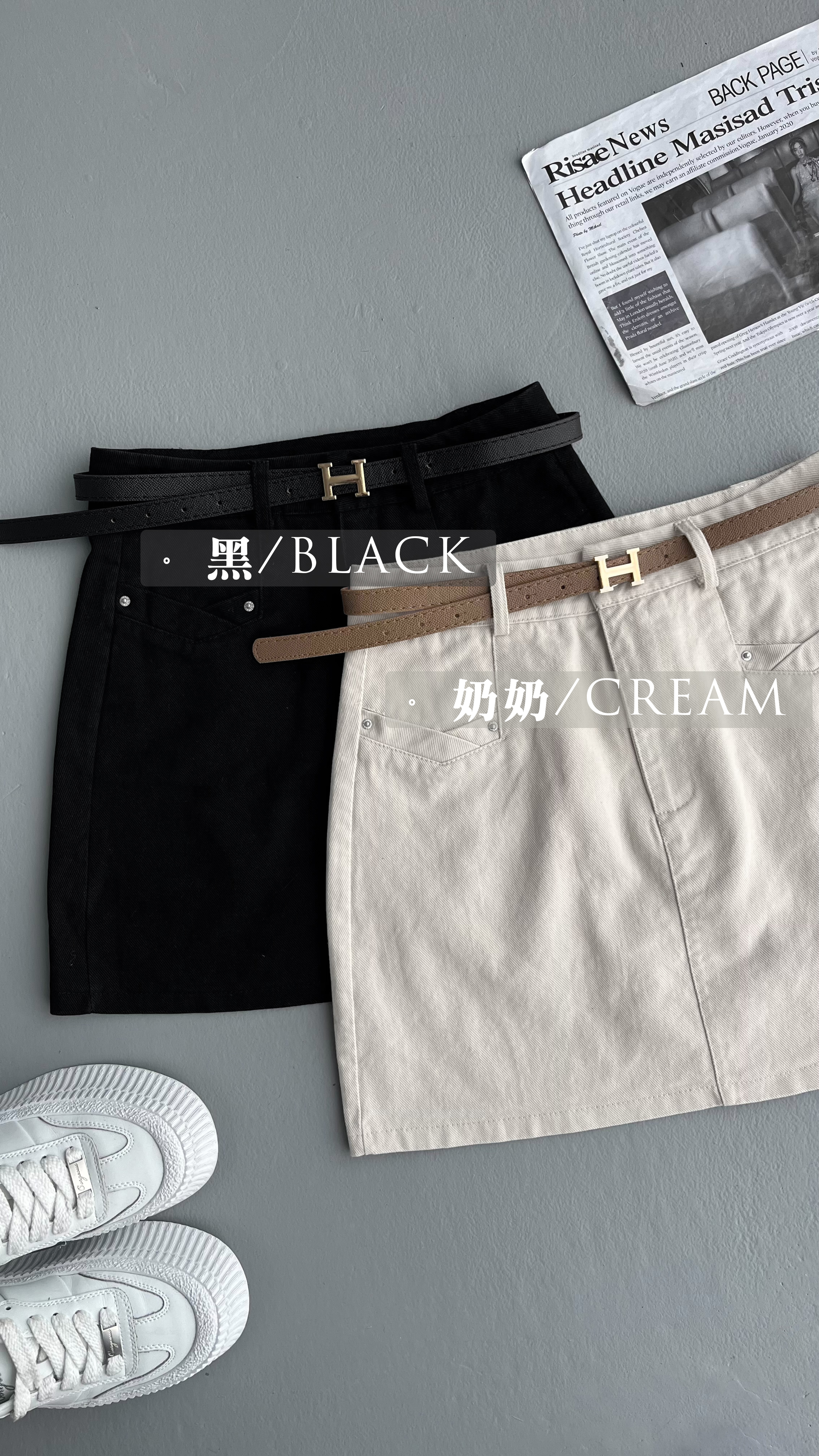 G5052 現貨「A字小腰V口褲裙」