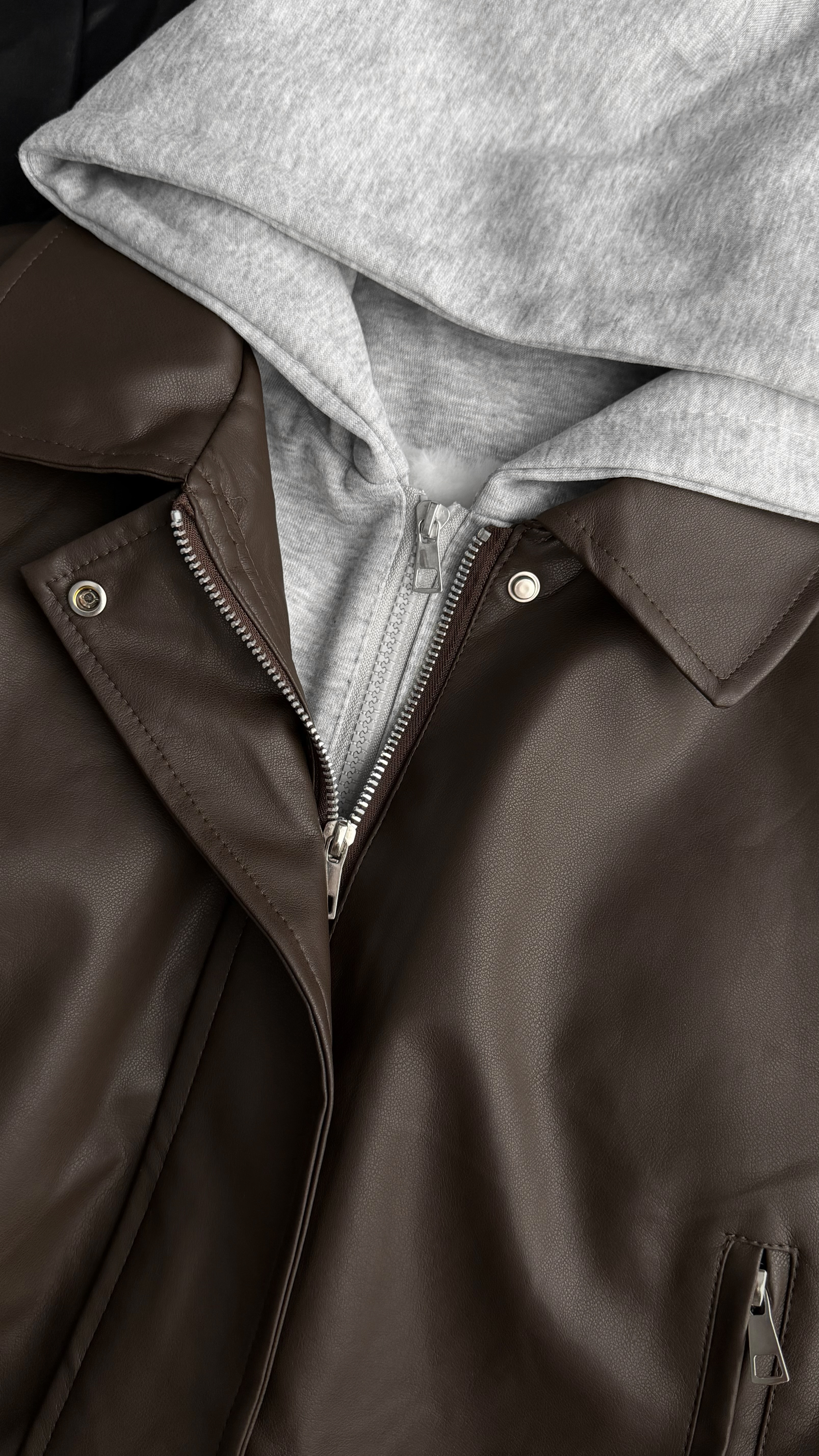 G7860 「(短版)連帽皮革兔毛毛保暖外套」