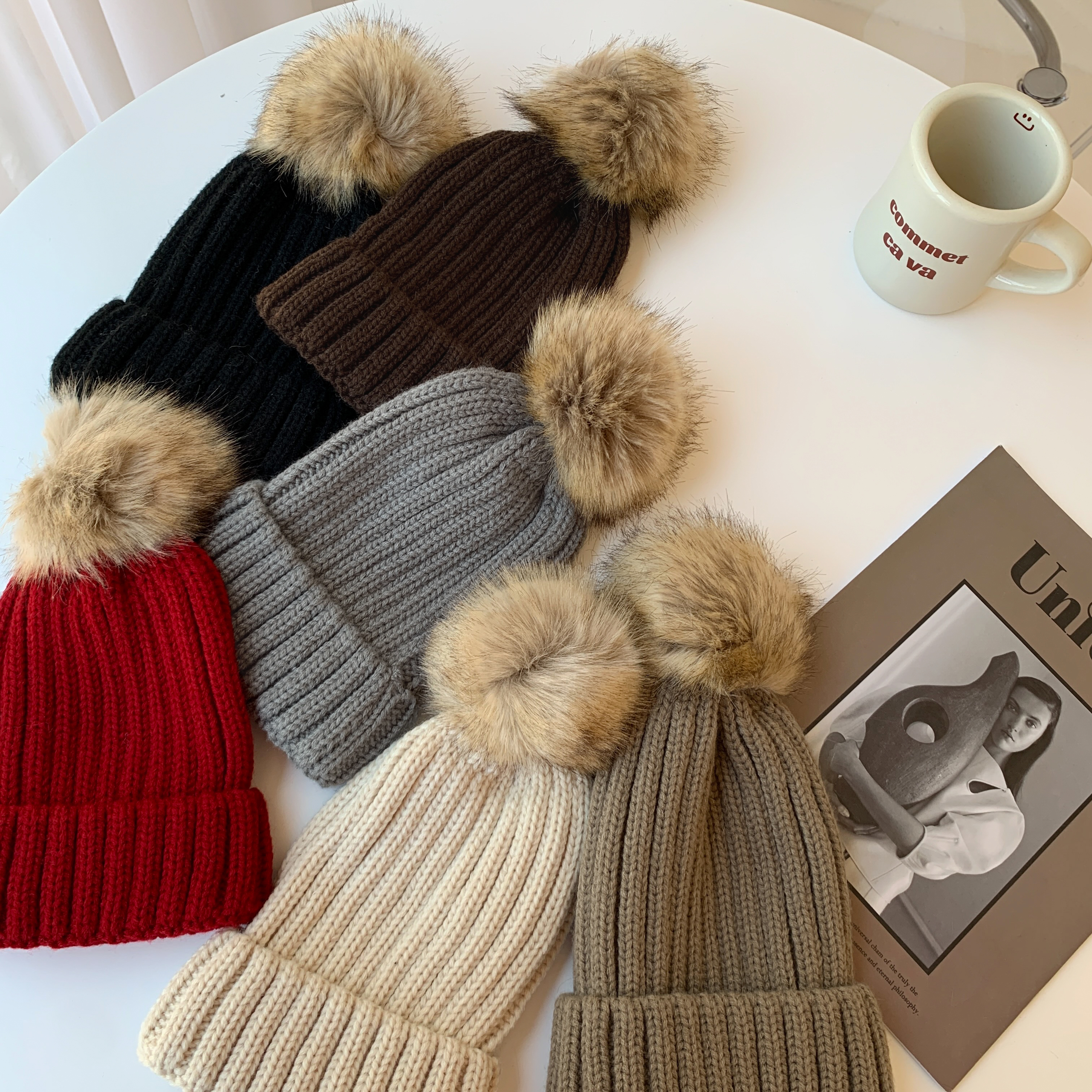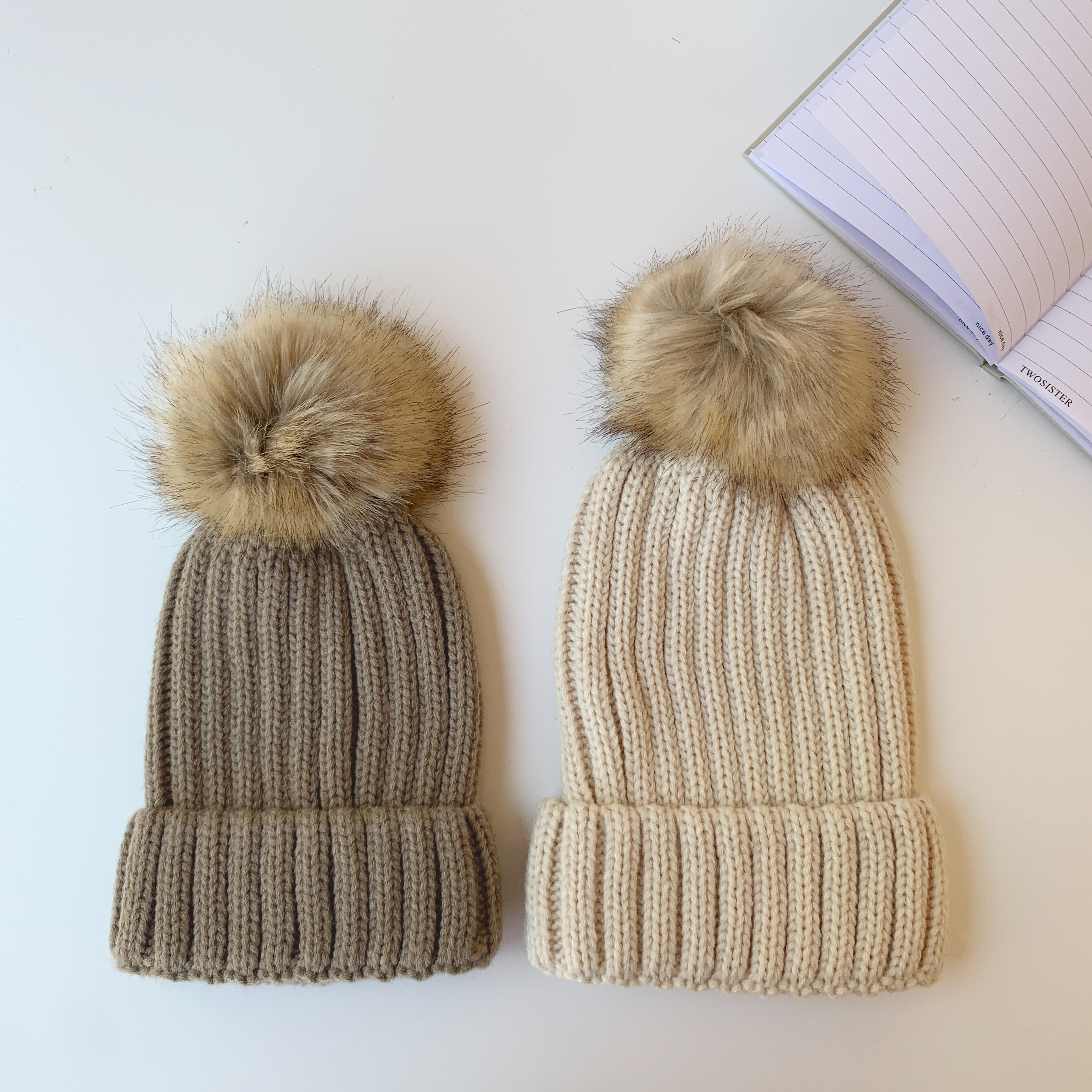 G8180 現貨「 仿狐狸毛球親子毛線帽」