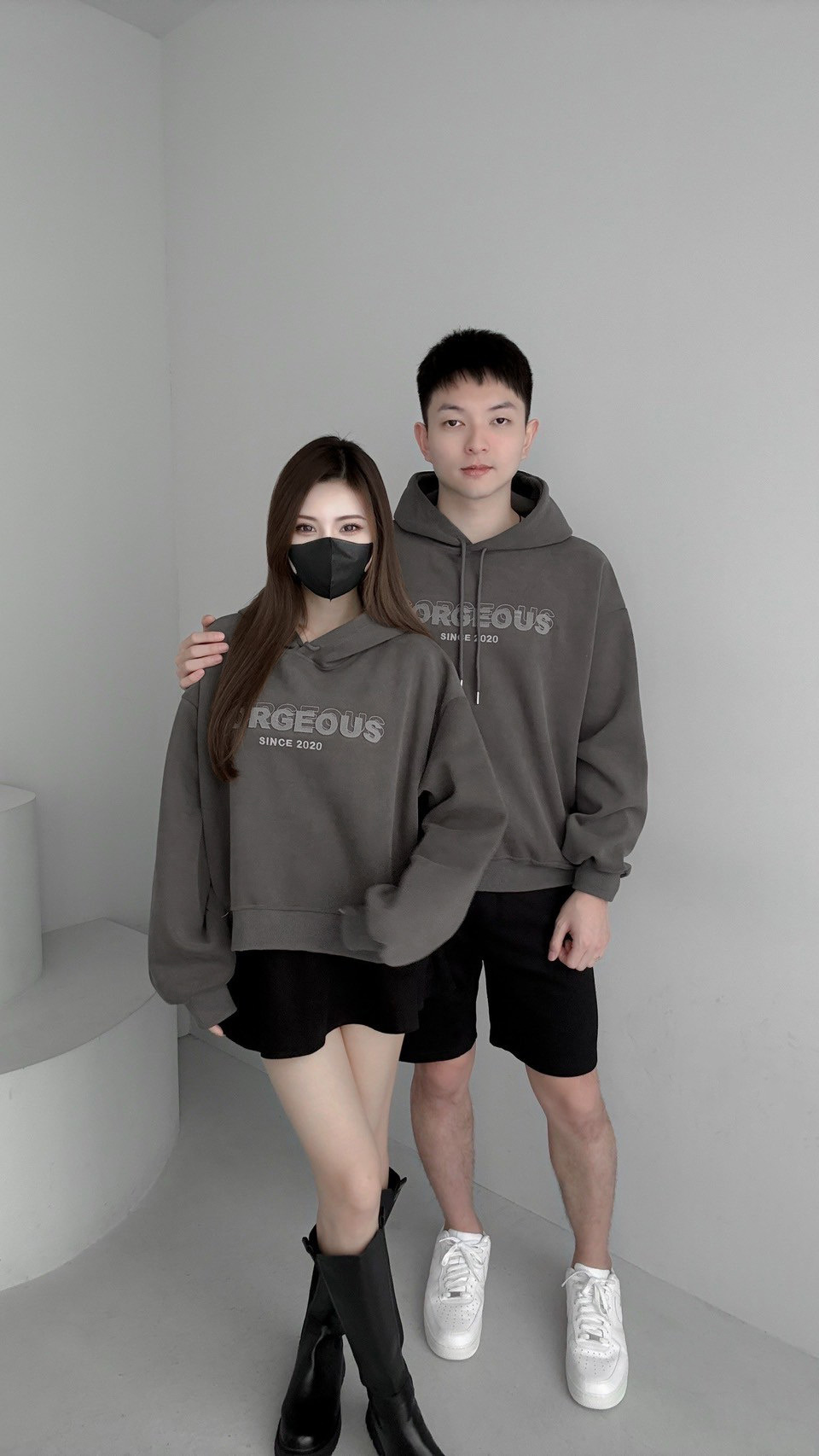 G9501 現貨「品牌'雙層團子高磅情侶帽TEE」