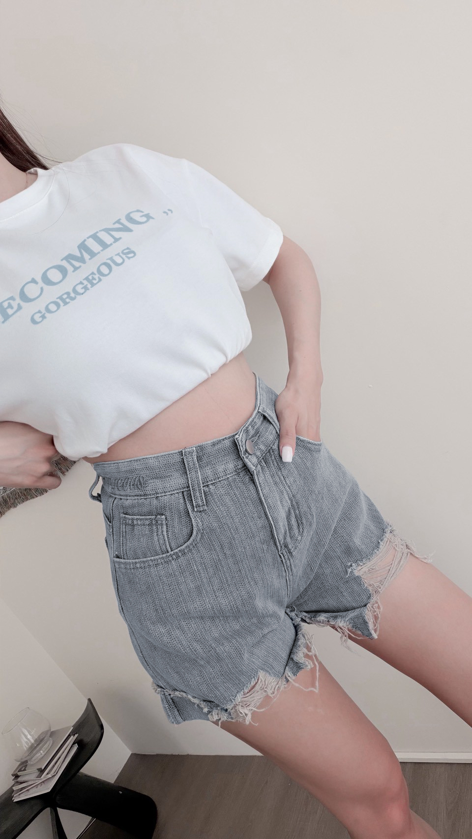 G9701 「豎紋Eco'Pro環保水洗牛仔短褲」