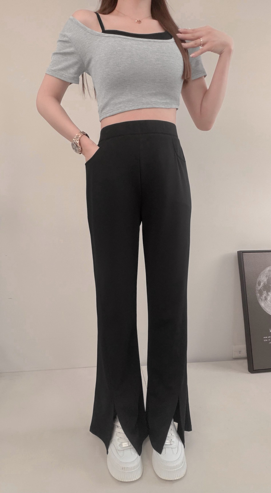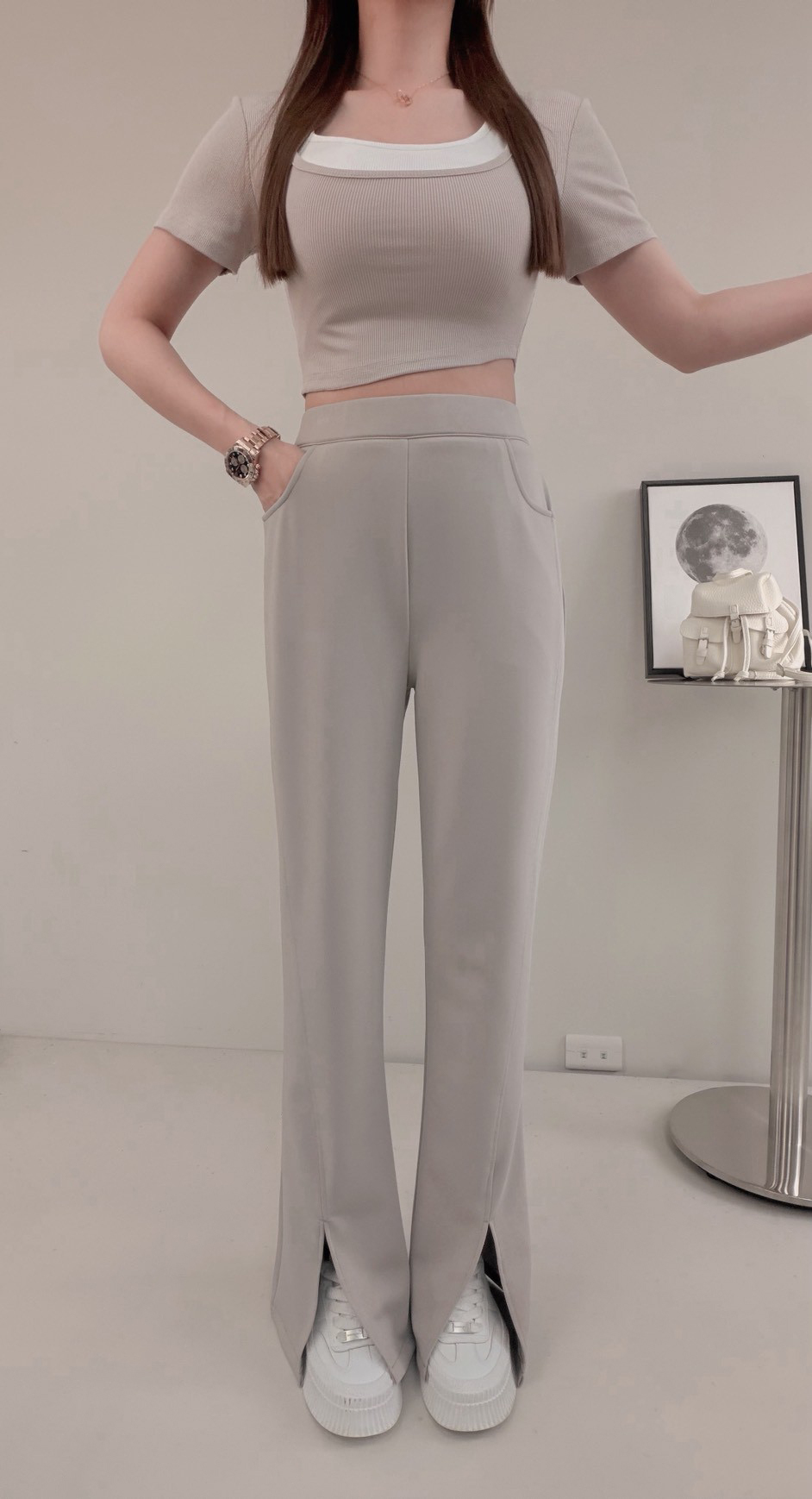 G9825 「麻糬防曬開衩長褲」
