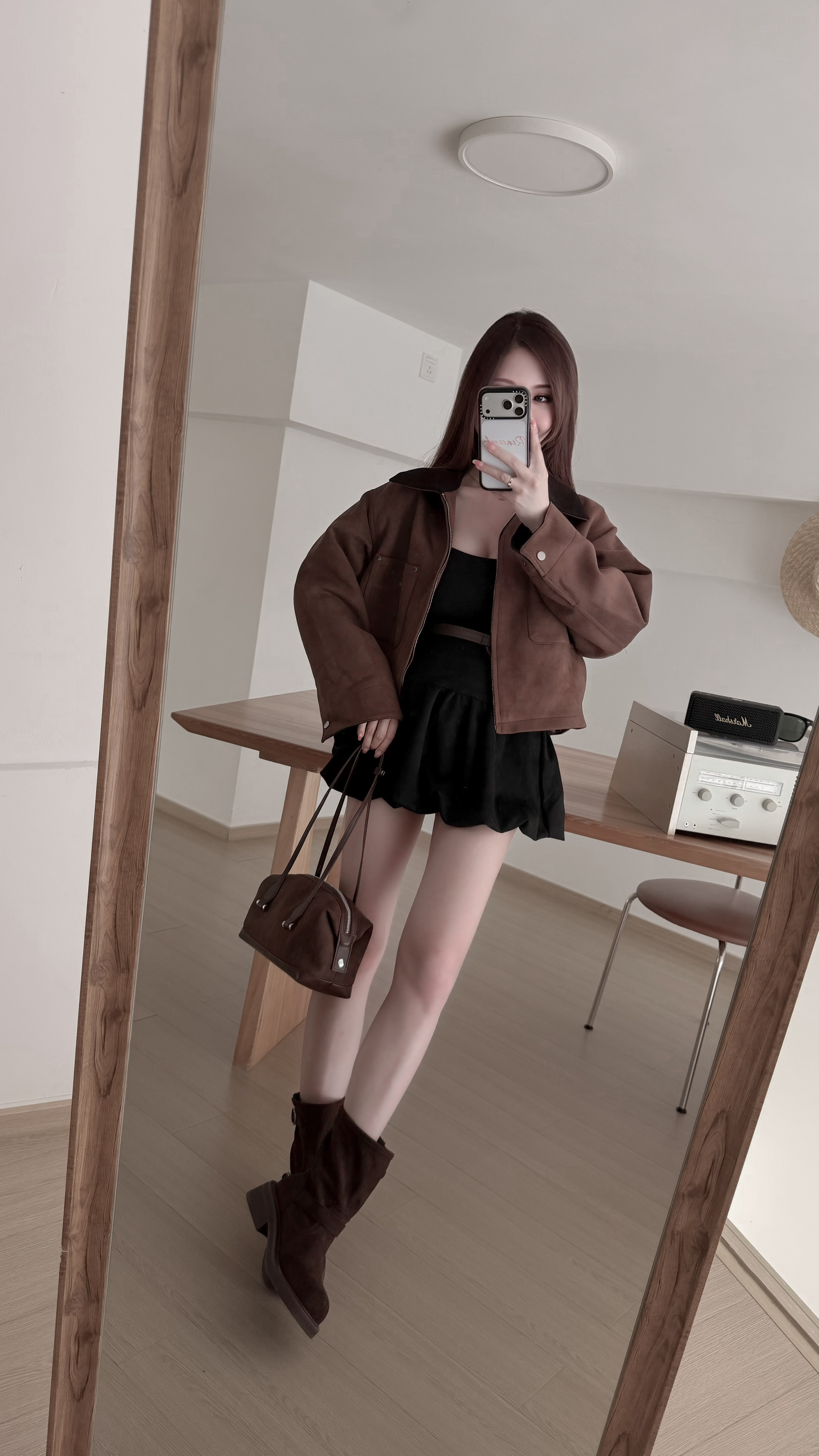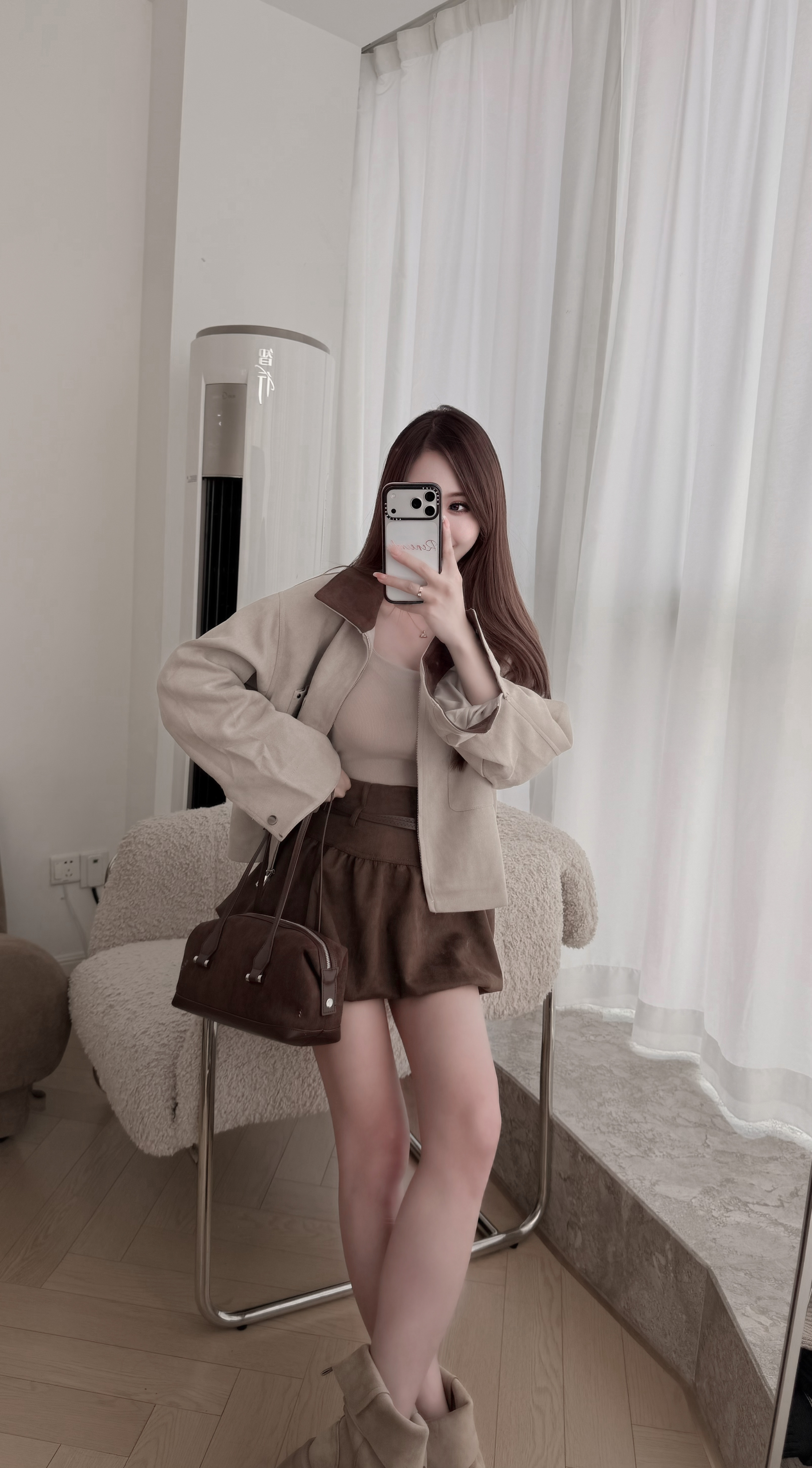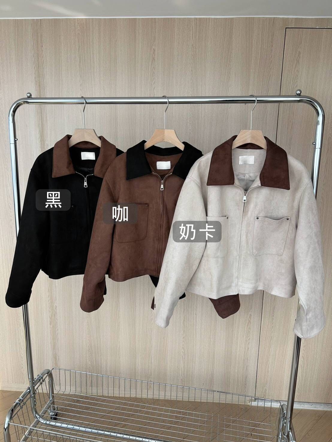 H55 現貨「蛋白麂皮色拼夾克外套」