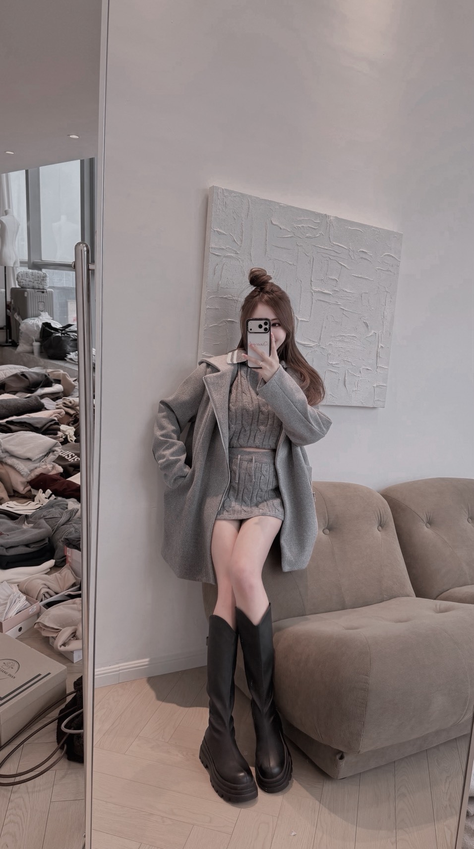 M113「毛呢防風撞色大衣外套」
