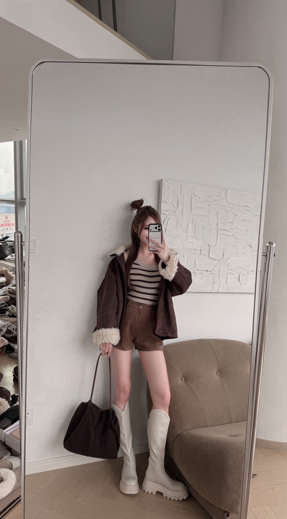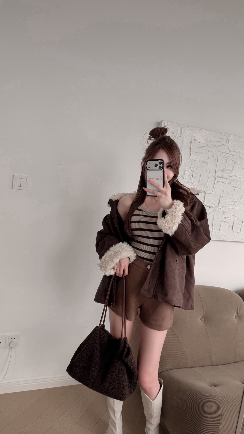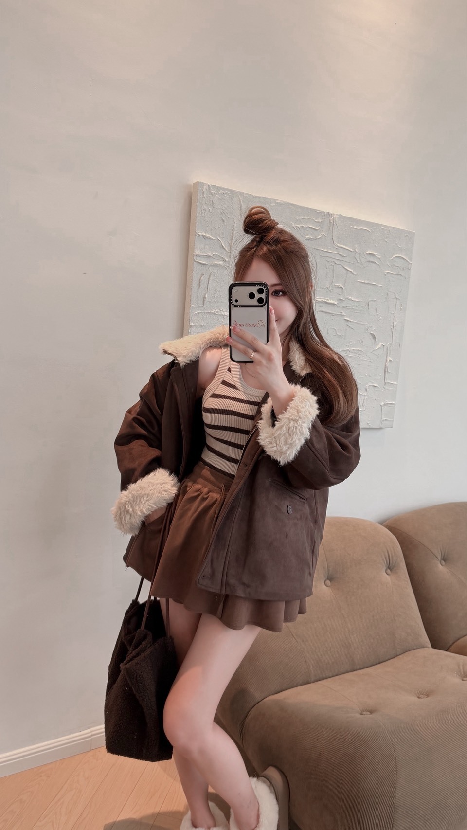 M38「羽絨麂皮`保暖長版外套」